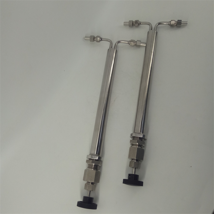 雙針式減壓閥采用超長調(diào)節(jié)通道和超長調(diào)節(jié)閥桿的設(shè)計(jì),很大范圍的進(jìn)行流量、壓力的調(diào)整。棒針式減壓閥JYF-32C流量調(diào)節(jié)從每公鐘150毫升至4公升、壓力下降至5000Psig的345巴爾格。該減壓閥的減壓的主要原理是當(dāng)高壓樣水通過時,利用細(xì)長棒針與管內(nèi)孔之間的間隙,達(dá)到減壓的目的。當(dāng)減壓閥的入口處壓力一定時,只須改變棒針的插入深度,即可調(diào)整減壓閥出口壓力,控制樣品流量。