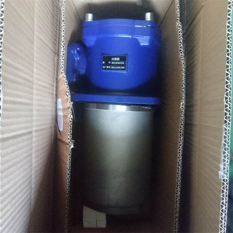 該過濾器的濾芯采用化纖過濾材質(zhì),具有過濾精度高,通油能力大,初始壓力損失小,納污量大等優(yōu)點,并裝有壓差發(fā)訊器及旁通閥。當濾芯堵塞到進出油口壓差為0.35MPa時,便發(fā)出開關(guān)信號,此時應更換濾芯。如果不能馬上停機或無人來更換濾芯,裝在濾芯上部的旁通閥會自動開啟,以保護系統(tǒng)。
