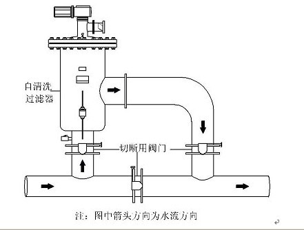 (3)自清洗過(guò)濾器應(yīng)安裝在需要保護(hù)的用水設(shè)備之前,并盡量靠近用水設(shè)備。
